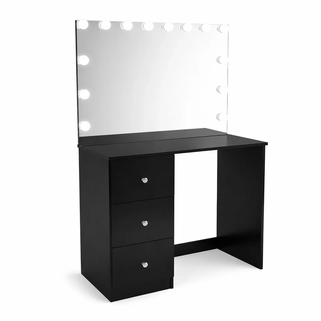 Coiffeuse en bois avec miroir lumineux noir 100x40x140 cm