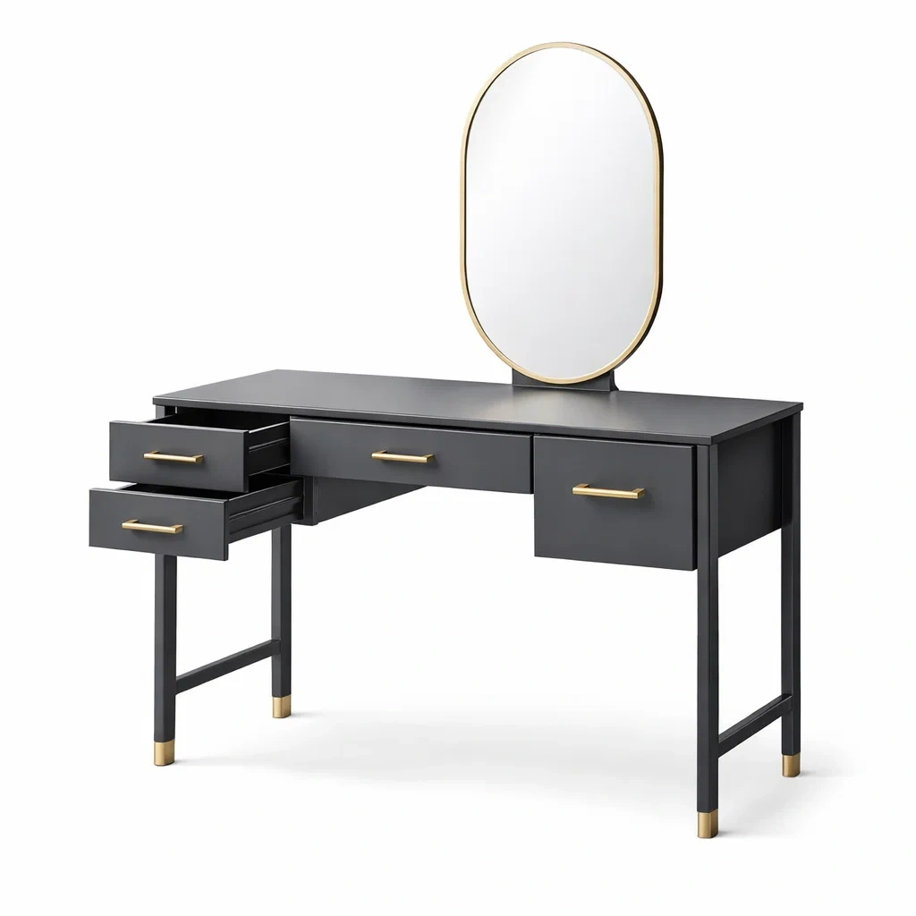 Coiffeuse en bois MDF avec miroir arc et 5 tiroirs, 135x40x135 cm